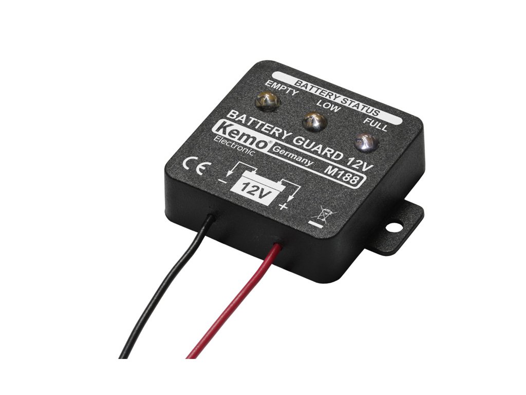 Modul kontroly stavu batérie, kombináciou rozsvietenia troch LED diod rôznej farby signalizuje nabitie 12V batérie v piatich úrovniach. Indikuje dobíjanie batérie počas prevádzky 12V batérie tromi LED: “Empty”, “Low”, “Full”. Takto je jednoduché mať stav akumulátora pod kontrolou a predísť úplnému vybitiu akumulátora. Tiež je možné sledovať, či je batéria v poriadku a či je dobíjaná dostatočným napätím (ak je modul pripojený aj počas dobíjania batérie). Využitie pre vozidlá, pracovné stroje, zariadenia na pohon batériou. Modul je potrebné zapojiť tak, aby počas kľudu zariadenia/vozidla nebol priamo pripojený na batériu, ale cez vypínač, zapaľovanie, alebo poistkovú skriňu.