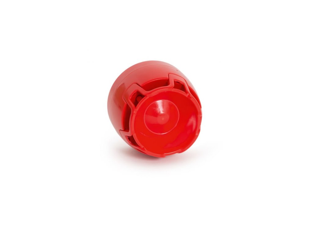 Siréna EN červená, EN 54-3, IP 21C, 9–29 V DC, synchrónne spúšťanie zvuku, hlasitosť nastaviteľná v 2 úrovniach priamo na zariadení, 32 signalizačných tónov - 6 pin. DIP prepínač, max. hlučnosť 107 dB, odber prúdu 31 mA pri 29 V DC (tón 8), montáž na strop aj stenu. Krytie IP 65 je možné docieliť výmenou pätice za CWR.