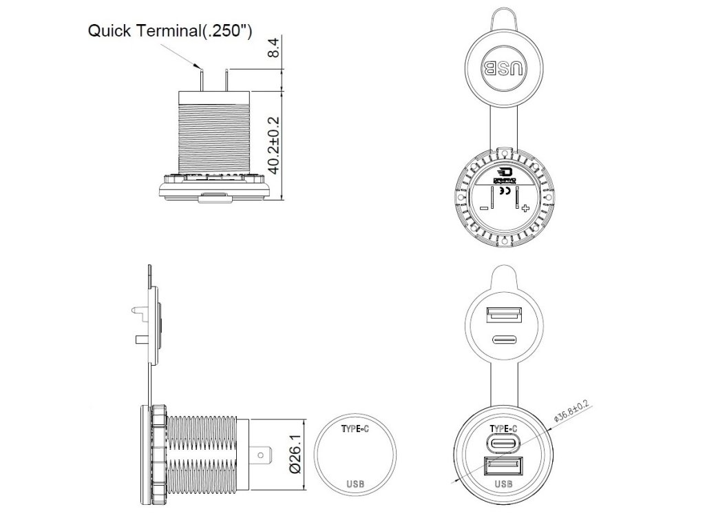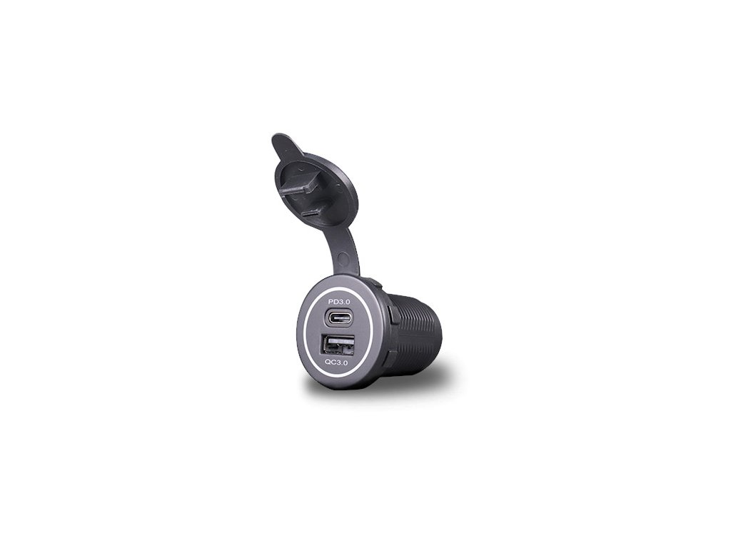Rýchlonabíjačka USB-A a USB-C (Qualcomm Quick Charge 3.0) zabudovateľná do panelu, s krytkou proti prachu a vlhkosti.