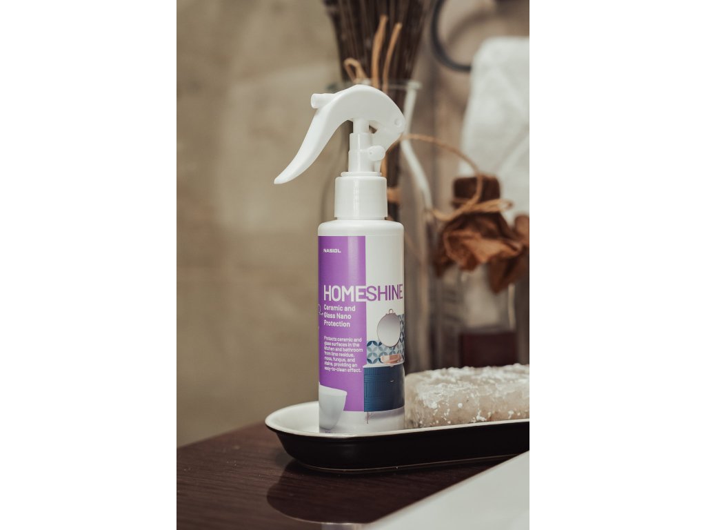 Nasiol HOMESHINE poskytuje ochranu keramickým a skleneným povrchom v kuchyni a kúpeľni pred usadením vodného kameňa, machom, plesňami a škvrnami. Taktiež zabezpečuje efekt jednoduchého čistenia.