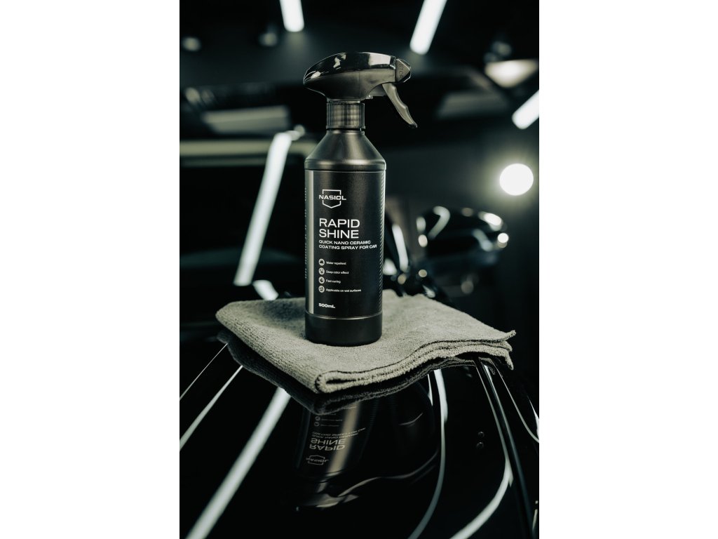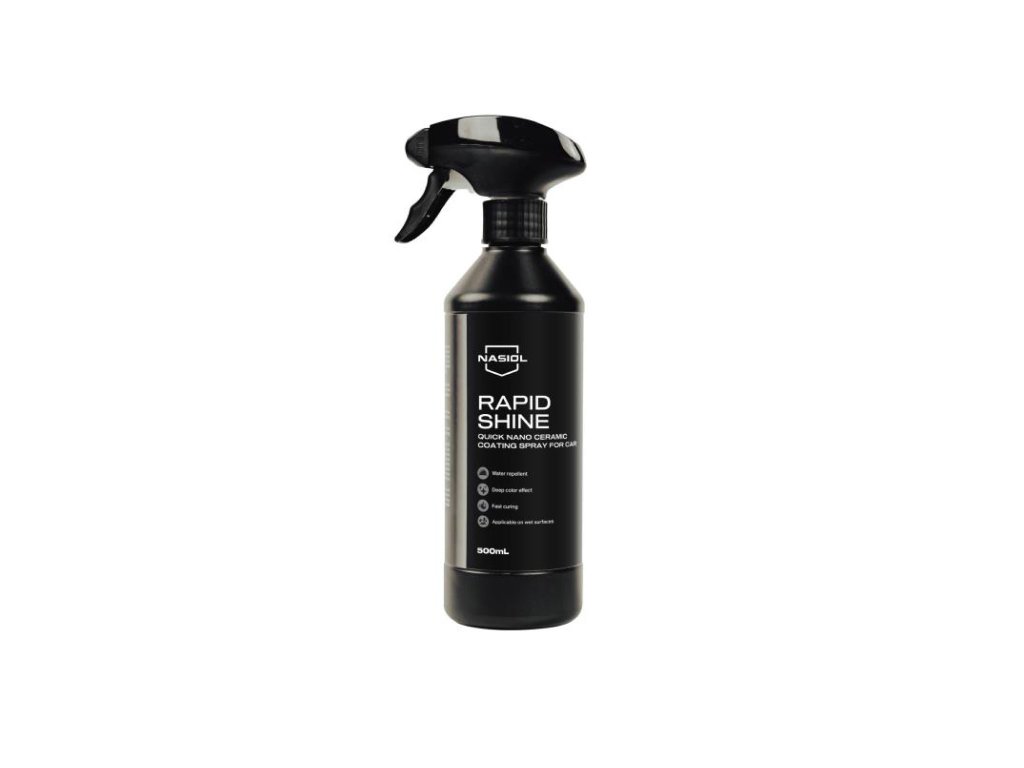 Nasiol RAPIDSHINE je keramický sprej na vodnej báze s nanotechnológiou, ktorý vám ušetrí čas pri údržbe auta. S jeho bezproblémovou aplikáciou môžete začať ihneď po umytí auta, čo vám uľahčí a zrýchli proces údržby. Zabezpečí dlhotrvajúcu hydrofóbnosť až na 1 rok.