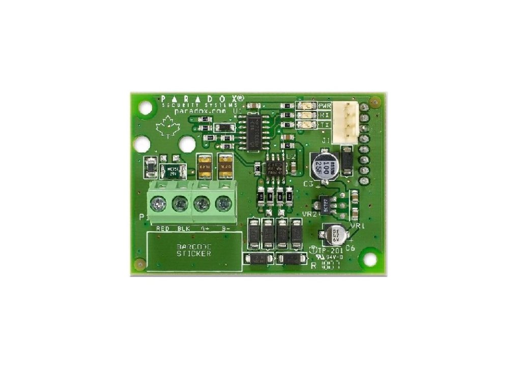 Prevodník slúžiace pre pripojenie PCS250, PCS100 k ústredni dlhším káblom. Možnosť pripojenia až na vzdialenosť 300 m cez zbernicu RS485.Dodatočné parametre