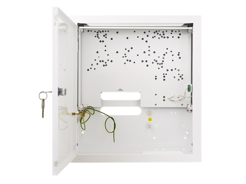 Kovová skrinka pre zapustenú montáž so sabotážnou ochranou pred otvorením, bez transformátora, miesto pre akumulátor 18 Ah, pre moduly SATEL: INTEGRA 24, INTEGRA 32, INTEGRA 64, INTEGRA 128, INTEGRA 64 PLUS, INTEGRA 128 PLUS, INTEGRA 256 PLUS, VERSA 5, VERSA 10, VERSA 15, PERFECTA 16, PERFECTA 32, CA-64 PTSA, INT-E, INT-ADR, INT-PP, INT-O, INT-KNX-2, INT-RS Plus, INT-FI, ETHM-1 Plus, INT-GSM, GSM-X, INT-VG, INT-VGM, INT-AV, INT-R, CA-10, CA-10 E, CA-6, ETHM-2, MDM-56 BO, STAM-1 PTSA, MP-1; PARADOX: SP4000, SP5500, SP6000, SP7000, EVO192, ZX8, PGM4, HUB-2, zámok MR008, rozmery 350 x 400 x 100 mm