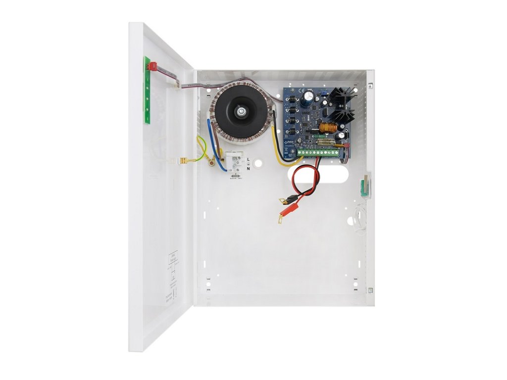 Vyrovnávací zálohovaný napájací zdroj, 13,8 V DC, výkon zdroja 3 A / 13,8 V, prúd nabíjania akumulátora 0,5 A / 1 A, priestor pre akumulátor TP 12-7 / 18, optická LED signalizácia napájania 230 V / výstupu DC / nabíjania akumulátora, ochrana proti skratu SCP, ochrana proti preťaženiu OLP, prepäťová ochrana OVP, ochrana akumulátora pred nadmerným vybitím UVP, technické výstupy typu OC EPS - porucha napájania, APS - porucha akumulátora, sabotážny kontakt otvorenia skrinky, zhoda s normou EN 50131 stupeň zabezpečenia 2, zhoda s normou EN60839-11:2013 stupeň zabezpečenia 2, IP 20, rozmery skrinky 235 x 305 x 82 mm