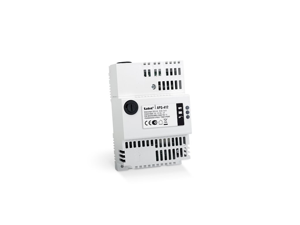 Pulzný zálohovaný spínaný napájací zdroj, 12 V DC, sumárny výkon zdroja 4 A (3 A ak je pripojený akumulátor), zhoda s normou EN 50131-6 Grade 2, zabezpečenie proti skratu a preťaženiu, prúd nabíjania akumulátora 0,5 A / 1 A, sústava nabíjania akumulátora s reguláciou prúdu, zabezpečenie pred úplným vybitím akumulátora, optická signalizácia a 3 výstupy typu OC na signalizáciu preťaženia zdroja / stave akumulátora / stave napájania, zaťažiteľnosť výstupov OC 50 mA, akustická signalizácia poruchy, konektor pre napájanie expandérov a zistenie stavu zdroja na ústredni, rozmery 122 x 59 x 77