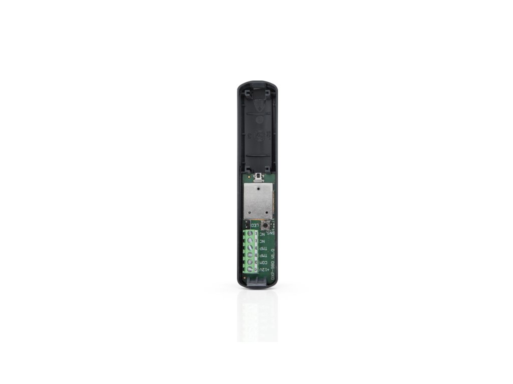 Záclonový detektor pohybu, šedý, digitálny algoritmus detekcie pohybu, nastaviteľná citlivosť detekcie pohybu, digitálna kompenzácia teploty, šošovka naprojektovaná špeciálne pre detektory pohybu – záclony, malého dosahu, signalizačná LED, kontrola napätia napájania, dvojitá sabotážna ochrana pred otvorením a odtrhnutím od steny, max. odber prúdu 7 mA, rozmery 20 x 102 x 25 mm, dosah detekcie 5 x 1 m, 15°