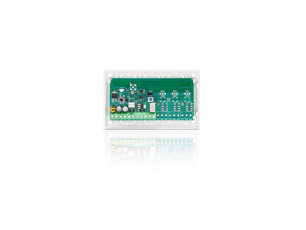 1 kanálový bezdrôtový prijímač 433 MHz, dosah do 350 m na voľnom priestranstve, umožňuje diaľkové ovládanie zariadení pomocou diaľkových ovládačov (max. 1024 DO), SDR chipset, 1x výstup typu relé NO/NC pulse/mono/bi-stabilný, signalizácia slabej batérie v DO výstup LV typu OC, výstup SS typu OC ovládajúci sirénu, 2x vstup na signalizáciu o poplachu a stave zapnutia/vypnutia stráženia, programovanie pomocou tlačidiel na doske elektroniky alebo cez RK Soft, súčasťou balenia 2x diaľkový ovládač T-1, pracovné napätie 12–24 V DC / 24 V AC, max. odber prúdu 27 mA / 12 V DC, 36 mA / 24 V DC, rozmery krytu 118 x 72 x 24 mm, podporované DO P-2/4, T-1/2/4, MPT-300/350