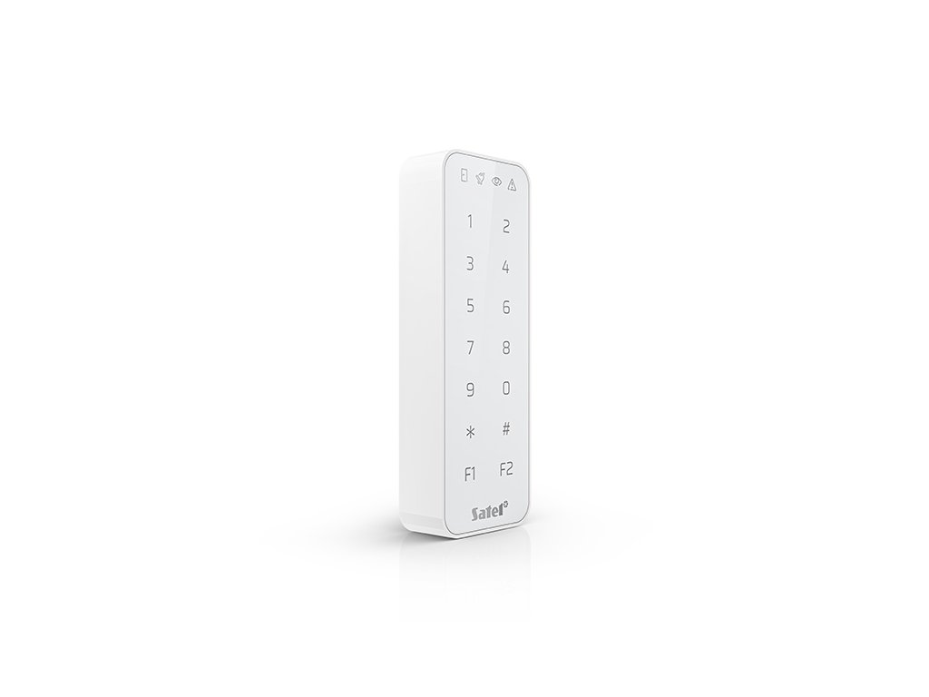 Vnútorná klávesnica pre skupiny s MIFARE® čítačkou (biela) pre systémy INTEGRA / ACCO / výrobcu tretích strán / autonómna čítačka (128 kariet/kódov), biele podsietenie, 4x LED, relé výstup na otvorenie zámku 1 A / 30 V DC, výstup BELL OC 30 mA / 12 V DC, vstup na kontrolu stavu dverí, vstup pre odchodové tlačidlo, montáž na stenu alebo na rám dverí, frekvencia čítačky 13,553–13,567 MHz, formát kariet Ultralight CSN/SSN, Classic CSN/SSN/MSN, DESFire (EV1 / EV2 / EV3) CSN/MSN, podpora protokolov Wiegand / OSDP ver. 2.2; RS-485, akustická signalizácia, dvojitá sabotážna ochrana pred otvorením a odtrhnutím od steny, pracovná teplota od -25 °C do +55 °C, max. odber prúdu 120 mA, rozmery 45 x 128 x 21 mm