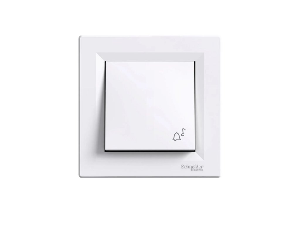 Tlačidlo 1/0 s piktogramom zvončeka Asfora, biele, lesklé, ABS plast, svorky automatické, stupeň krytia IP 20, rozmery 83 x 83 x 43 mm, hmotnosť 0,075 kg