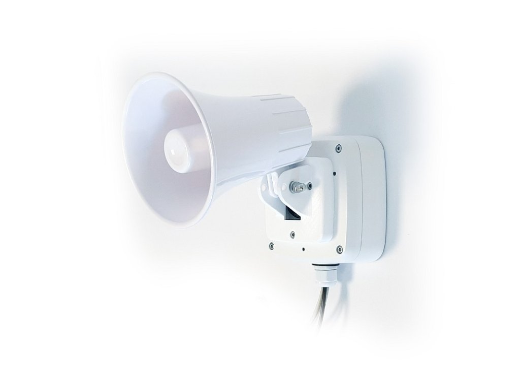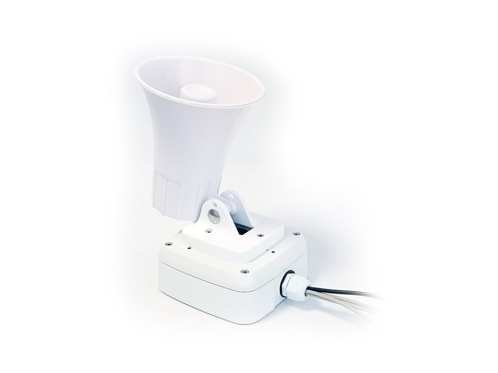 Systém pre prehrávanie zvukových signálov z SD karty k CCTV aplikáciám na základe zopnutia alarmového vstupu (max. 6 hlásení) alebo prostredníctvom RS-485 (max. 255 hlásení), max. 10 W, IP 65, 12 V DC