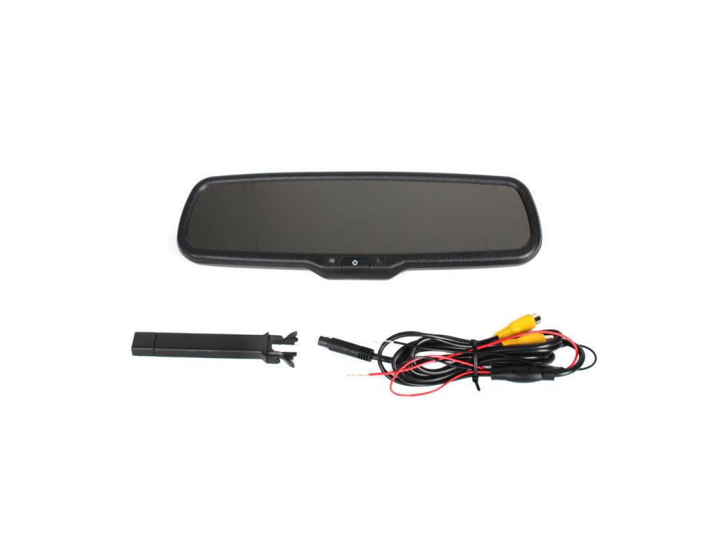 Monitor 4,3" integrovaný do spätného zrkadla, inštaluje sa na miesto pôvodného zrkadla vo vozidle. Slúži na zobrazenie obrazu z parkovacej kamery, po zaradení spiatočky sa zobrazí reálny obraz za vozidlom pre bezpečné cúvanie a parkovanie. K upevneniu zrkadla na pôvodnú kovovú päticu na čelnom skle je NUTNÉ DOKÚPIŤ DRŽIAK pre konkrétny model vozidla do ktorého má byť zrkadlo inštalované (napr. HOLDER1, HOLDER2). Monitor obsahuje 2x video vstup pre pripojenie 2 kamier.