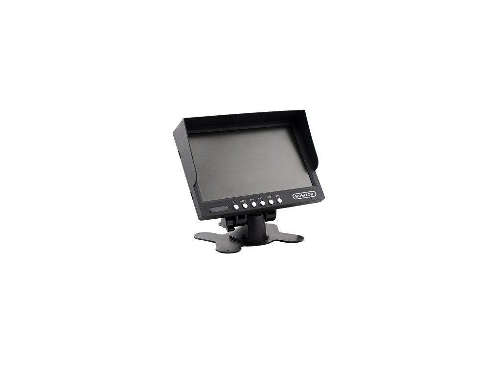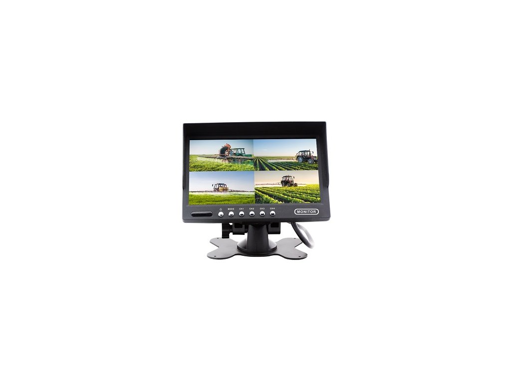 Monitor do vozidla s uhlopriečkou 7", pre pripojenie až štyroch kamier, súčasné zobrazenie záberu viacerých kamier, skrutkovacie konektory M12 4PIN, rozlíšenie 800x480, pre vozidlá s palubným napätím 12/24V, možnosť pripojiť analógové kamery s konektormi M12, alebo RCA cinch(použitím redukcie), možnosť otočiť obraz o 180°, ideálny pre pripojenie parkovacej kamery, bočných a prednej kamery, alebo kamery v ložnom priestore.