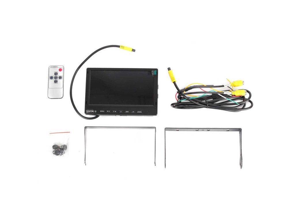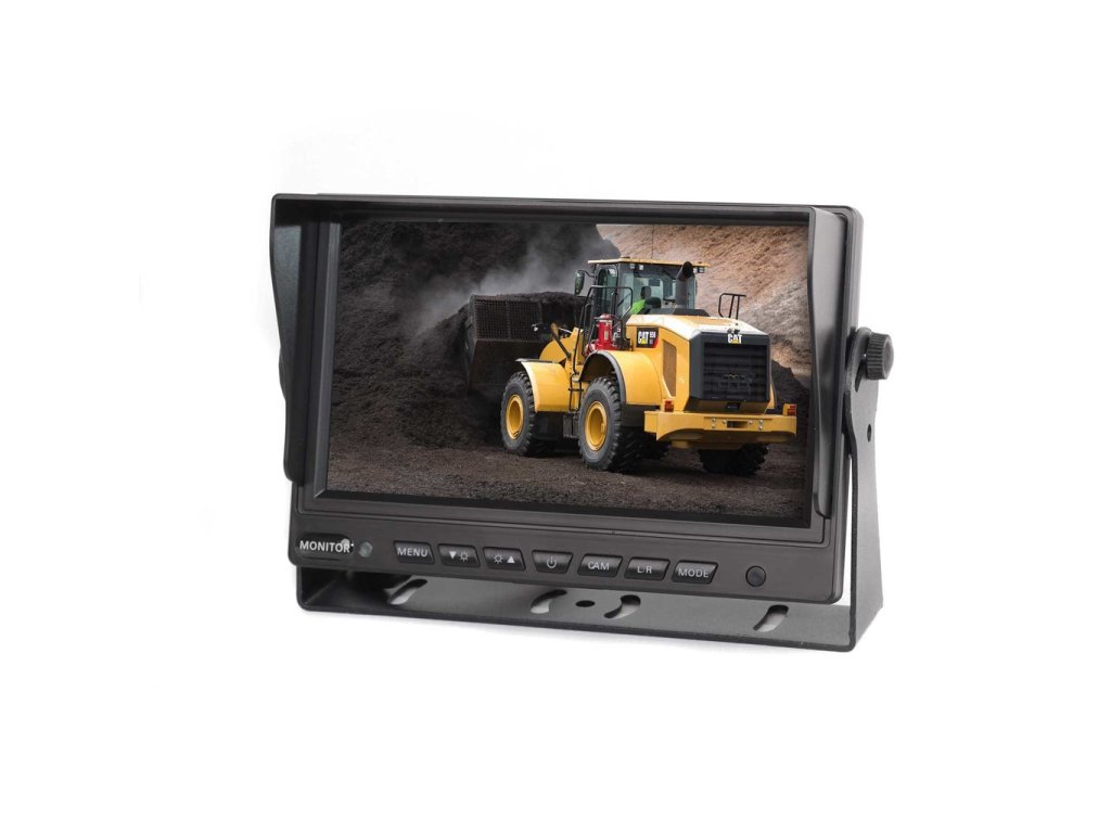 AHD Monitor do vozidla s uhlopriečkou 7", pre pripojenie dvoch kamier, umožňuje súčasné zobrazenie záberu dvoch kamier, skrutkovacie konektory M12 4PIN, rozlíšenie 1024x600, pre vozidlá s palubným napätím 12/24V, možnosť pripojiť AHD kamery, alebo analógové kamery s konektormi M12, alebo RCA cinch(použitím redukcie), možnosť otočiť obraz o 180°, ideálny pre pripojenie parkovacej kamery, a bočnej kamery (prípadne prednej, alebo kamery v ložnom priestore).