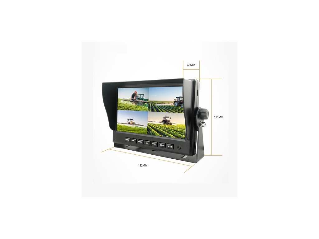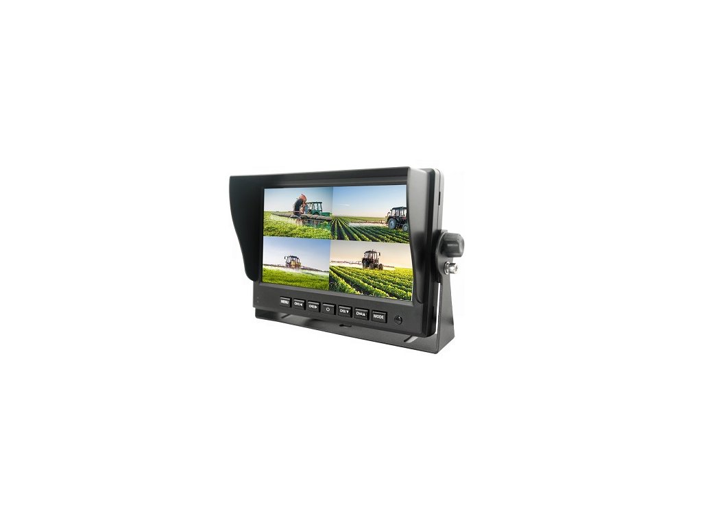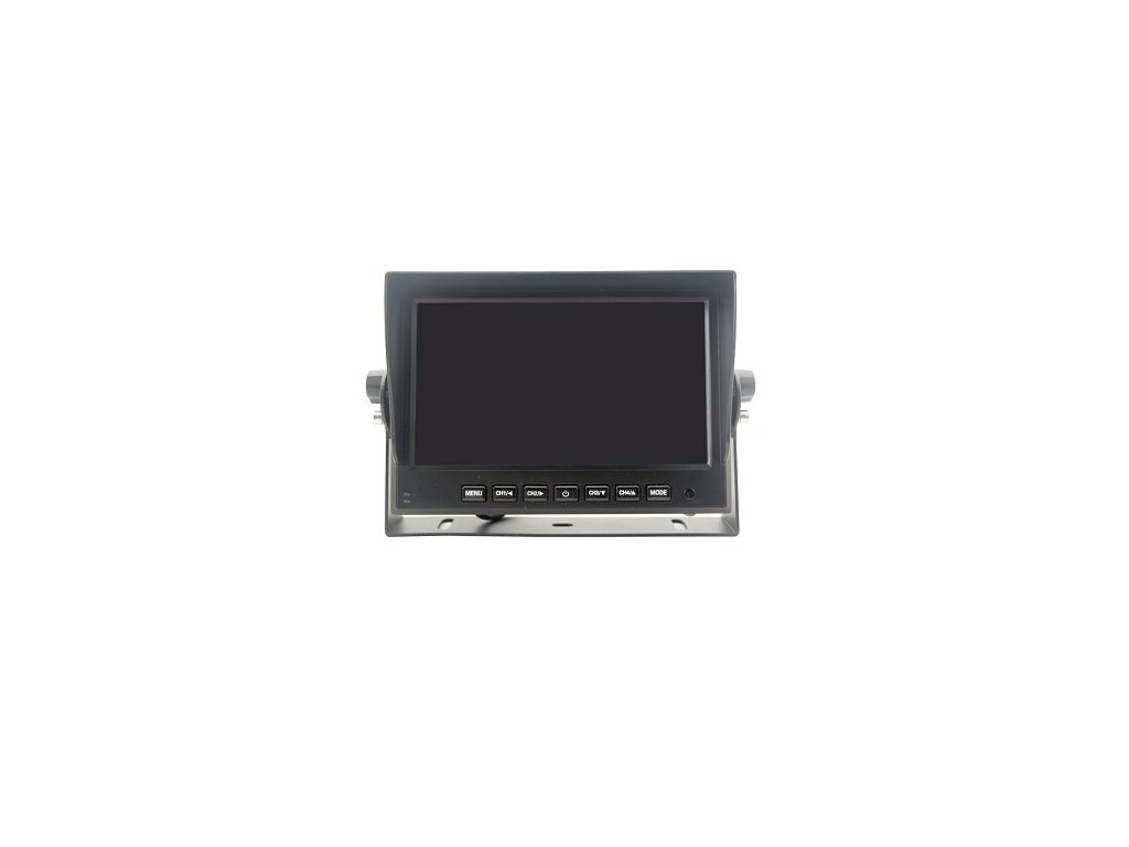 AHD Monitor do vozidla s uhlopriečkou 7", pre pripojenie až štyroch kamier, súčasné zobrazenie záberu viacerých kamier, skrutkovacie konektory M12 4PIN, rozlíšenie 1024x600, pre vozidlá s palubným napätím 12/24V, možnosť pripojiť AHD kamery, alebo analógové kamery s konektormi M12, alebo RCA cinch(použitím redukcie), možnosť otočiť obraz o 180°, ideálny pre pripojenie parkovacej kamery, bočných a prednej kamery, alebo kamery v ložnom priestore.