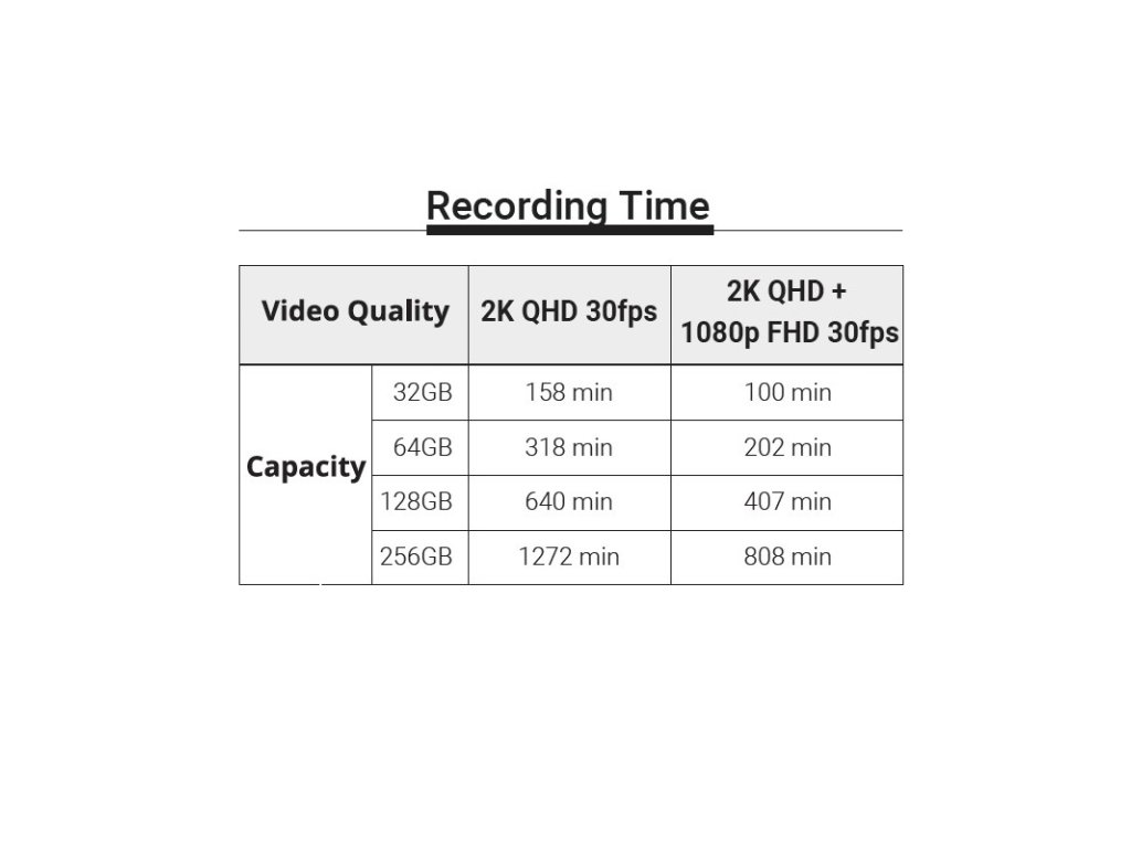 - video rozlíšenie: 2K QHD (2560x1440 30fps) H.264/MP4