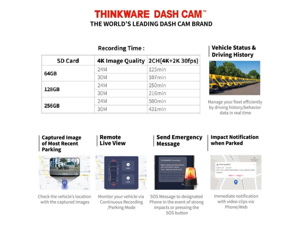 Thinkware U3000 2CH Autokamera 4K+2K, WiFi, GPS, BT, mikrovlnný senzor, Hotspot