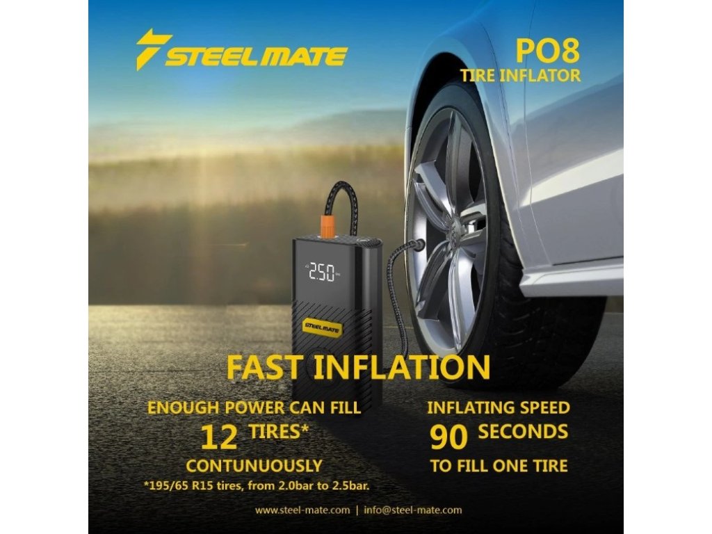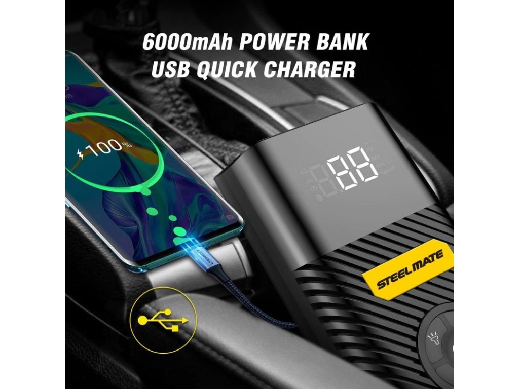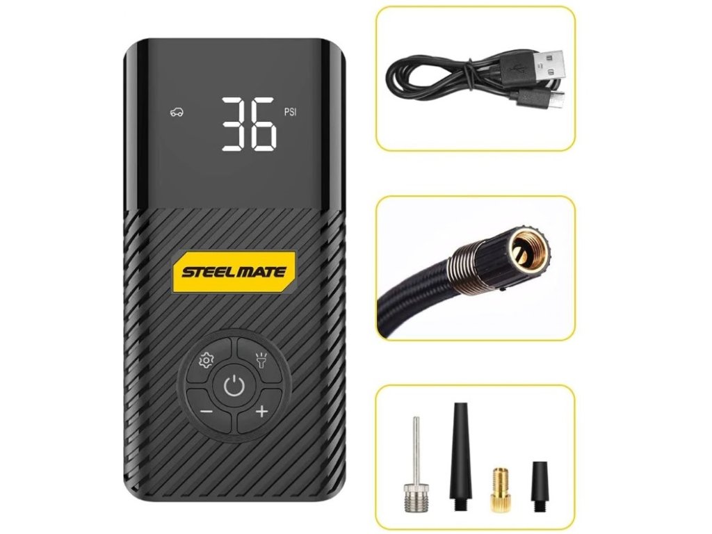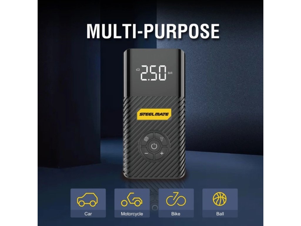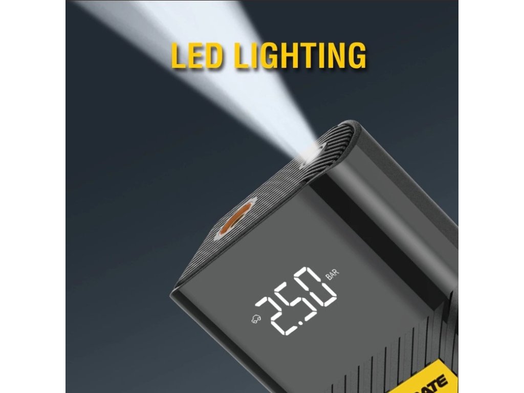 - Rýchly a výkonný kompresor, vstavaná lítiová batéria 6000mAh. Táto pumpa do auta má maximálny tlak 120 PSI (8,3 Bar). Dodáva sa so 4 adaptérmi, vďaka ktorým je ideálny pre autá, RV, motocykle, pneumatiky na bicykle, nafukovacie matrace, nafukovacie člny, lopty a iné.
