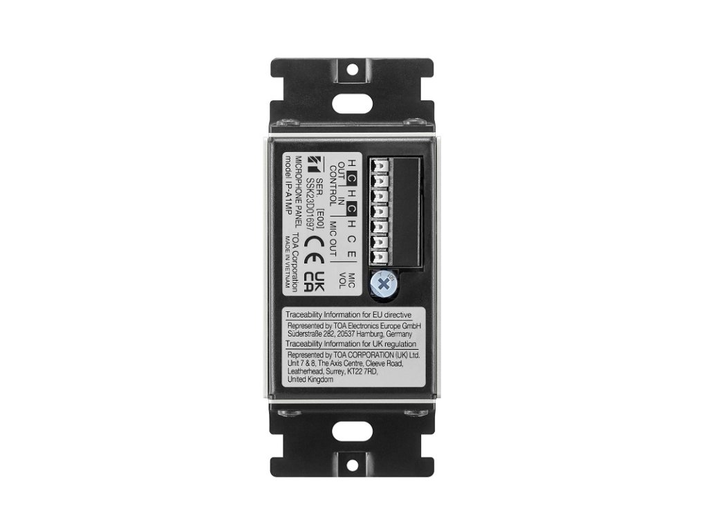 Analógový mikrofónny panel určený pre IP-A1AF audio rozhranie alebo IP-A1PA12. Panel obsahuje všesmerový mikrofón s predzosilňovačom, tlačidlo hovoru a LED indikátor. Audio výstup: 1x LINE (vyvážené, push-in svorkovnica). Ovládací vstup: 1x beznapäťový kontakt (push-in svorkovnica). Ovládací výstup: 1x beznapäťový kontakt (push-in svorkovnica). Napájanie pomocou fantómového napájania. Rozmery: 44,6 x 107 x 29 mm (Š x V x H), hmotnosť: 0,17 kg. Spracovanie: oceľ, ABS plast, farba: biela.