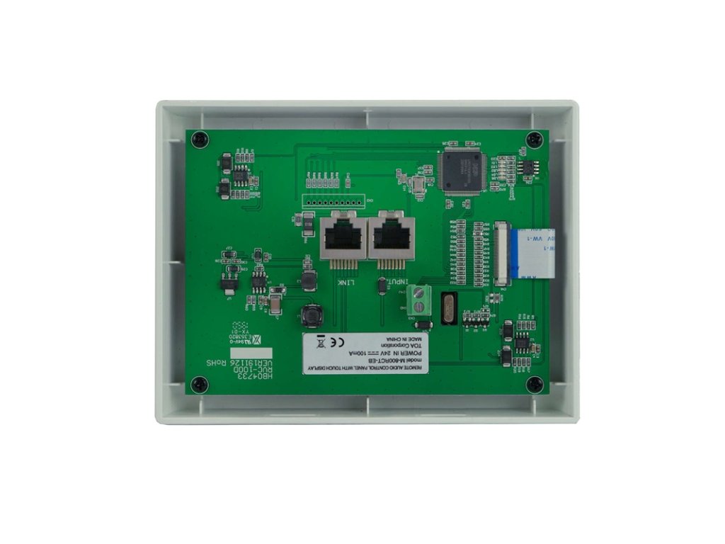 Diaľkový ovládací panel s 4,3“ dotykovým displejom M-800RCT pre digitálny maticový pult M 8080D. Funkcie: Smerovanie vstupného/výstupného signálu, ovládanie hlasitosti, výber predvoľby a zobrazenie systémových informácii). Vstupy: 1x RD IN – RJ45 (pripojenie M-8080D, M-804EX alebo M-800RC, M-800RCT pre daisy chain). Výstupy: 1x RD EXP – RJ45 (pripojenie M-800RC alebo M800RCT). Napájanie: 24 V DC (napájané z M-8080D alebo M-804EX alebo externým zdrojom). Vyhotovenie: polykarbonát + ABS, biela farba. Rozmery: 150 x 115 x 28 mm. Hmotnosť: 0,28 kg.