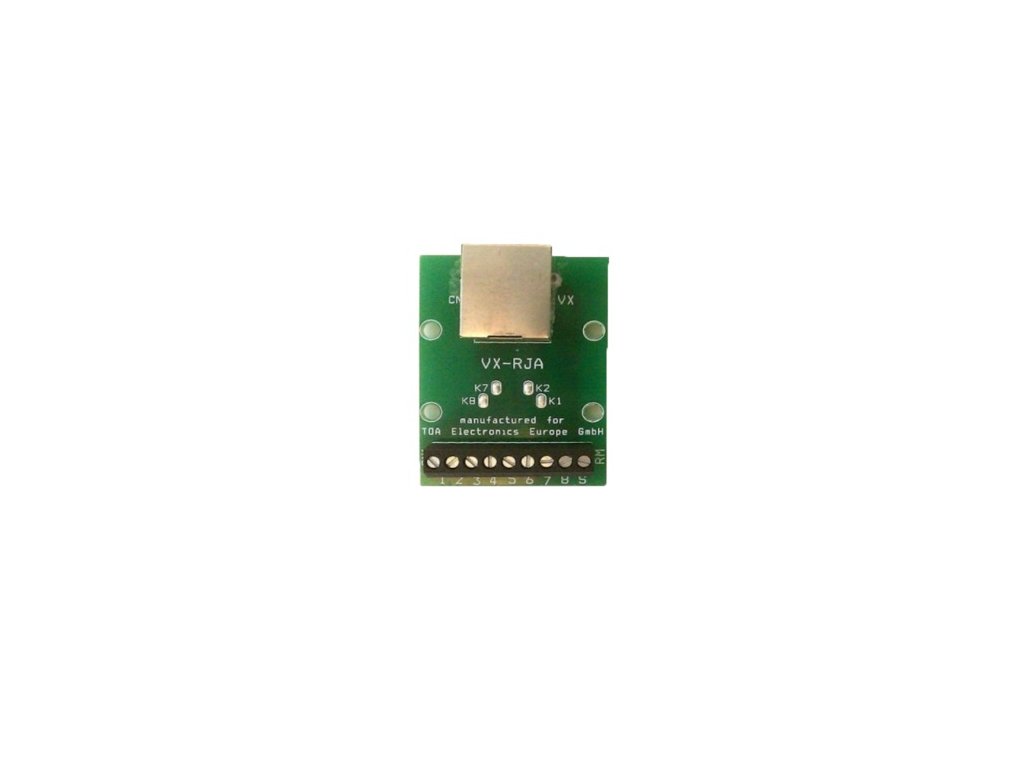 RJ-45 adaptér navrhnutý tak, aby bol každý pin konektora k dispozícii na skrutkových svorkách na pripojenie inštalačných káblov s prierezom od 0,5 mm2 do 2,5 mm2. Vhodné na pripájanie vzdialených zariadení do TOA zariadení vybavených RJ-45 vstupmi / výstupmi. Možnosť inštalovať na DIN lištu. Držiaky na DIN lištu sú súčasťou balenia