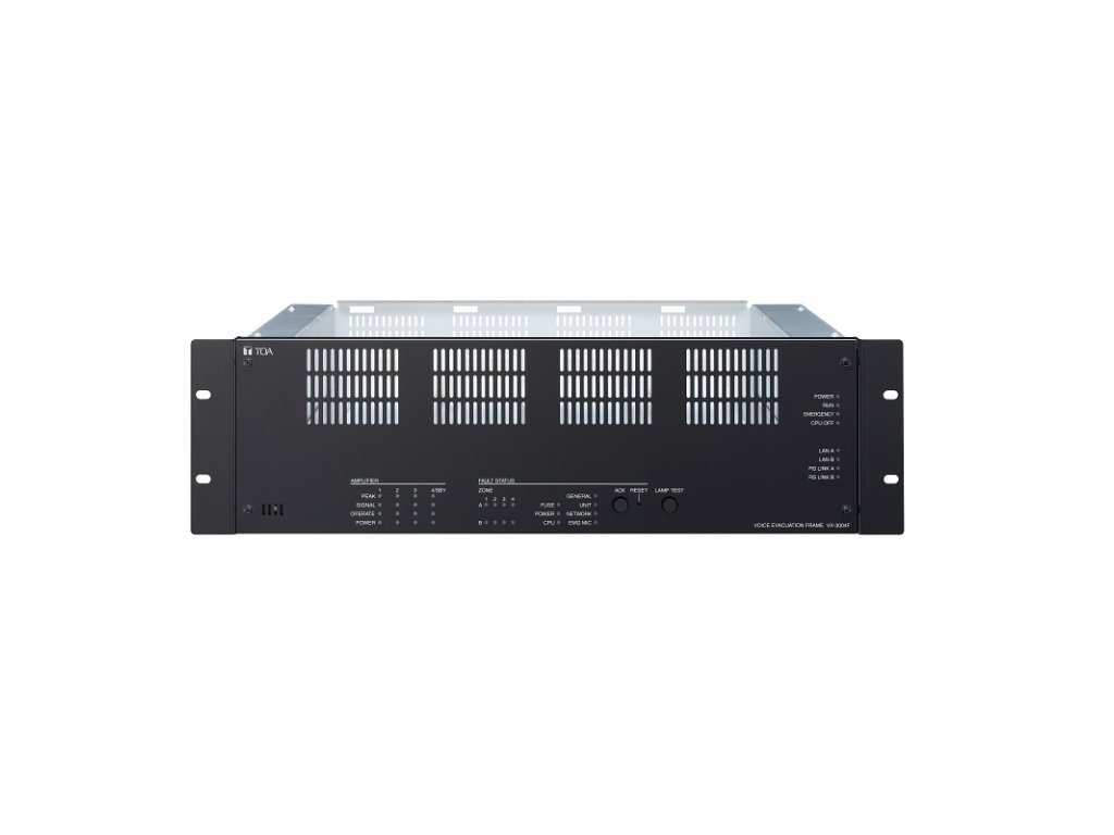 Riadiaca jednotka systému HSP TOA VX-3000, má v ráme 4x slot pre zosilňovače, umožňuje pripojiť 4x AB reproduktorové linky alebo 3x AB reproduktorové linky a záložný zosilňovač, max. možný inštalovaný výkon 4 x 500 W, 4x audio vstup, 2x RM port pre mikrofóny (na každý však max. 4 ks), 16 ovládacích vstupov, pripojenie cez LAN, napájanie 31 V DC, rozmery 483 x 133 x 345 mm, EN 54-16