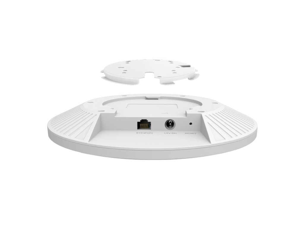 Omada nástenný AP, frekvencia 2,4 / 5 GHz, Internal Omni 2x 2.4 GHz: 4 dBi, 4x 5 GHz: 5 dBi, rýchlosť prenosu 4804 Mbps, IEEE 802.11 a/b/g/n/ac/ax, pokrytie: 140 m2, pripojenie: 250 klientov, webové rozhranie a Omada App, 1x 10/100/1000/2500 Mbps RJ-45 PoE IN port; napájanie PoE (802.3af) / 12 V DC 2 A (adaptér je súčasťou balenia) rozmery 220,0 x 220,0 x 32,5 mm, pracovná teplota od 0 °C do +40 °C