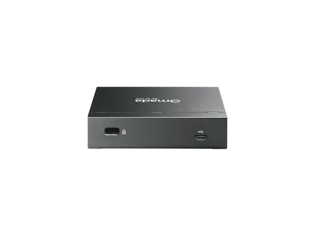 Hardvérový kontrolér Omada, 2x 10 /100/1000 Mbps RJ-45 Port, 1x USB 2.0 port, 1x Micro USB Port; L3 Manažment, AP Manažment, Omada App, Cloud, Multi-Site Manažment; Pripojenie 100 prístupových bodov Omada, 20 switchov Omada, 10 routeru Omada, 2 DeltaStream GPON OLT jednotky; Napájanie: 802.3af/at PoE / Micro USB(DC 5 V / Min. 1 A) (bez Adaptéra v balení), Rozmery: 100 x 98 x 25 mm, pracovaná teplota od 0 °C do +40 °C.