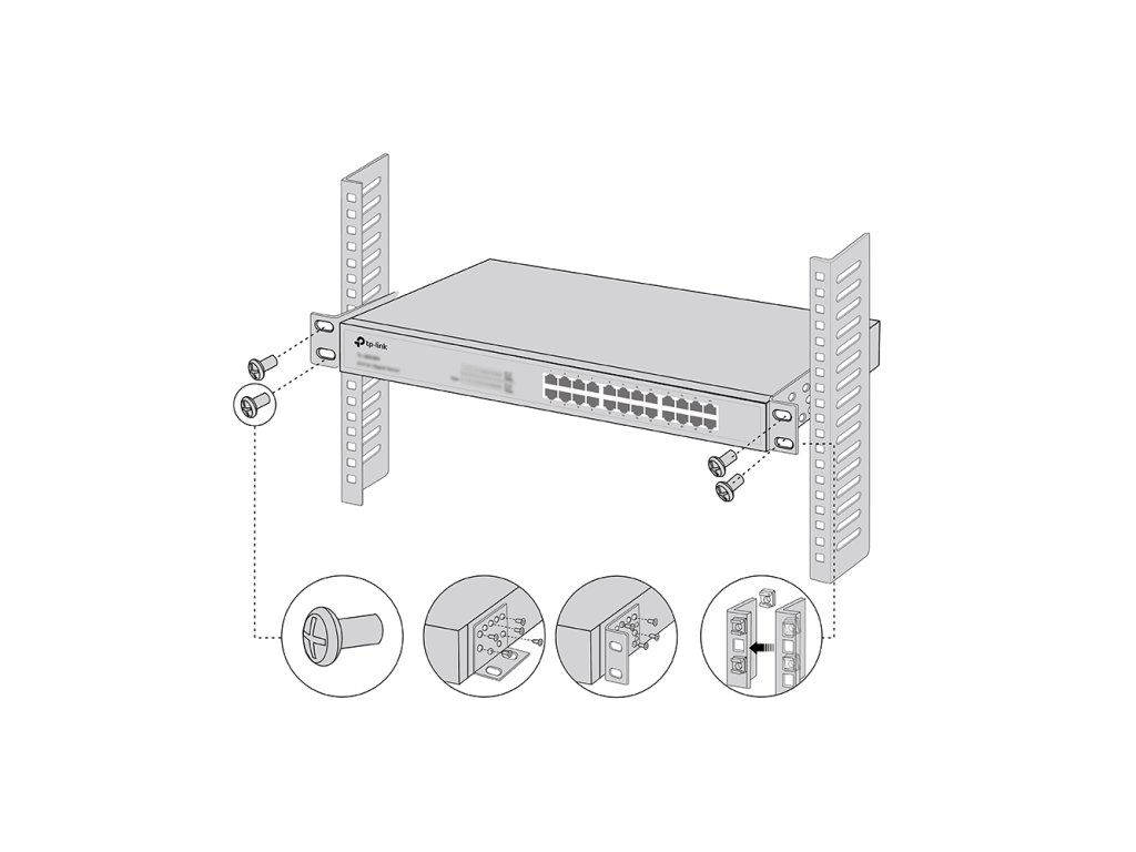 Montážna sada pre inštaláciu 19“ switchov TP-Link alebo iných kompatibilných produktov do 19“ racku.