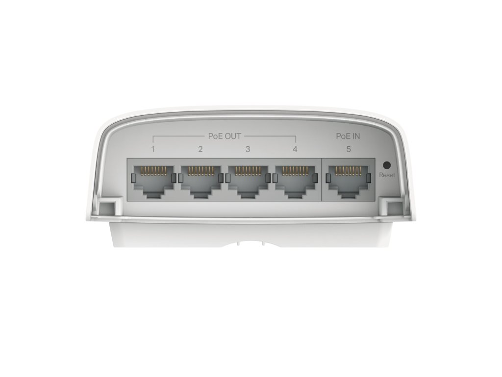 1x in port RJ-45 10/100/1000 PoE++ (802.3af/at/bt), 4x RJ-45 10/100/1000 PoE+ (802.3 af/at), odber spolu 60 W, Omada App, Web GUI, SNMP, DHCP, rozmery 100,0 x 38,5 x 170,0 mm, pracovná teplota od -40 °C do +60 °C, IP 55