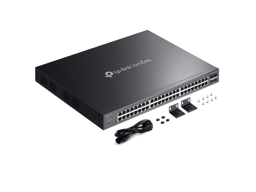 52portový PoE+ manažovatelný L2+ switch, 32× 10/100/1000 Mb/s RJ45 portov PoE+ (IEEE 802.3 af/at 30W), 16× 10/100/1000 Mb/s RJ-45, 4x 1000 Mb/s SFP, PoE spolu max. 230 W; Switching Capacity 104 Gbps; Packet Forwarding Rate: 77,37 Mbps, MAC Address Table 16K, Packet Buffer Memory 12 Mbit, Jumbo Frame 9 KB; Omada Cloud a webové rozhranie, pracovná teplota od 0 °C do 40 °C, napájanie 100-240 VAC 50/60 Hz, spotreba max. 304,5 W, rozmery 440 × 330 × 44 mm
