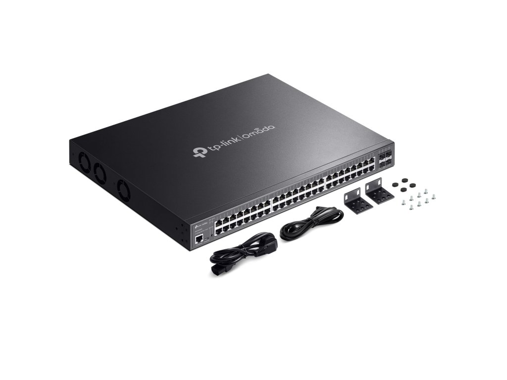 52portový PoE++ manažovatelný L2+ switch, 40× 10/100/1000 Mb/s RJ-45 PoE+ (IEEE 802.3 af/at 30 W), 8× 10/100/1000 Mb/s RJ-45 PoE++ (IEEE 802.3 af/at/bt 90 W), 4x 10000 Mb/s SFP+, 1x RJ-45 Console port, 1x Micro USB Console port, PoE spolu max. 750 W; Switching Capacity 176 Gbps; Packet Forwarding Rate: 130,9 Mbps, MAC Address Table 16K, Packet Buffer Memory 12 Mbit, Jumbo Frame 9 KB; Omada Cloud a webové rozhranie, pracovná teplota od 0 °C do 40 °C, napájanie 100-240 VAC 50/60 Hz, spotreba max. 913,4 W, rozmery 440 × 330 × 44 mm