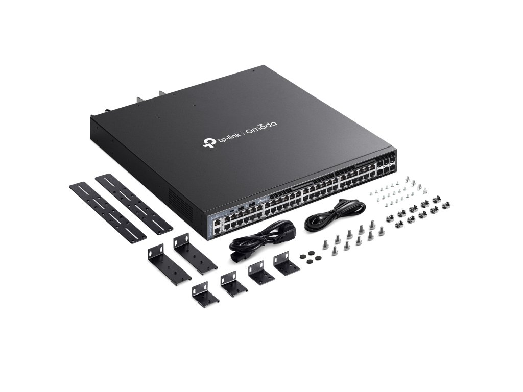 54portový PoE+ manažovatelný L3 switch, 48× 10/100/1000 Mb/s RJ-45 PoE+ (IEEE 802.3 af/at 30 W), 6x 10 000 Mb/s SFP+, 1x RJ-45 Console port, 1x USB Type-C Console port, 1x RJ-45 Management port, 2x USB 2.0, PoE spolu max. 1440 W; Switching Capacity 216 Gbps; Packet Forwarding Rate: 160,7 Mbps, MAC Address Table 32K, Packet Buffer Memory 3 Mbit, Jumbo Frame 9 KB; Omada Cloud a webové rozhranie, pracovná teplota od -5 °C do 45 °C, napájanie 100-240 VAC 50/60 Hz Redundant a Hot-Swappable, spotreba max. 1767,7 W, rozmery 440 × 420 × 44 mm