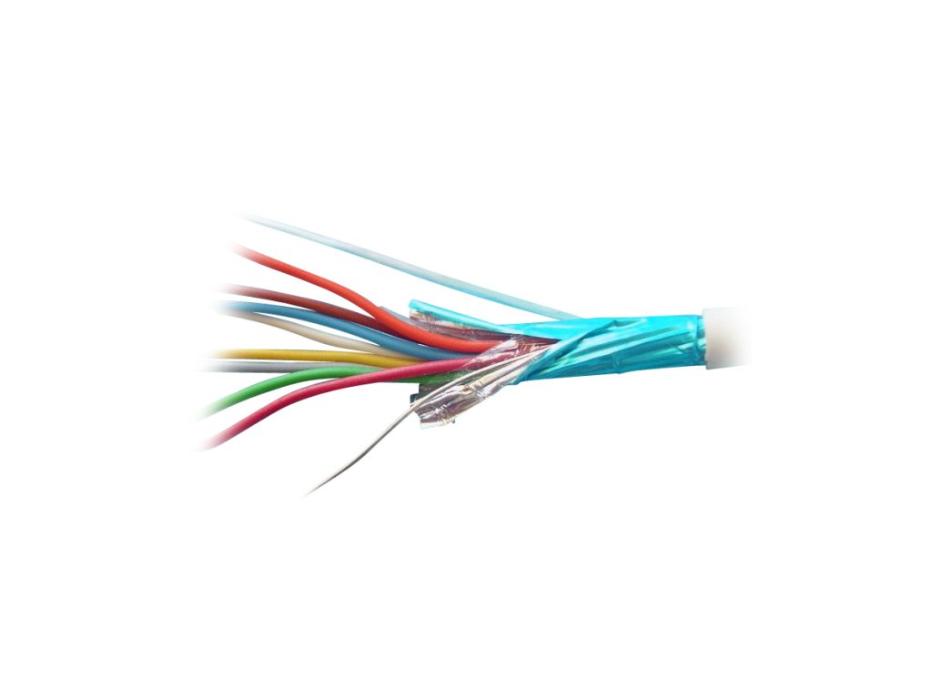 Signálny kábel pre EZS, izolované medené drôty 8x0,5 mm, farebné rozlíšenie, tienenie Alu folia + 1 CU drôt, biela PVC izolácia, značenie dĺžky na plášti, balenie 100m